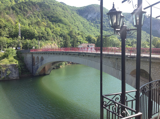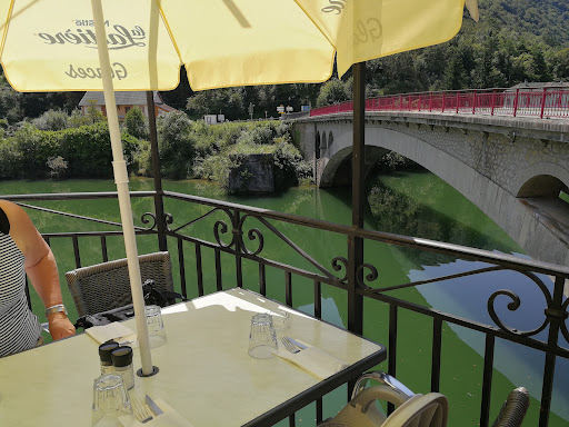 At the bend of a bridge over the Ain with a magnificent panorama, a beautiful inn with creative, generous cuisine, fresh homemade products, friendly and efficient welcome and service, good value for money, don't hesitate to stop, beautiful terrace at the water's edge.