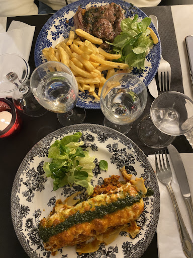 We ate a mixed board and a wine and a beer and everything was delicious in a beautiful area besides Caen, on a pedestrian street. We parked 150 meters from the premises.