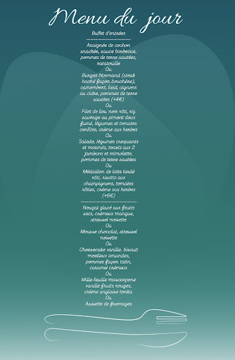 Welcomed with a smile, a buffet of homemade starters, a choice of 2 main courses and 2 desserts, everything is homemade and originality is present on the plate. A pleasant surprise with a menu at €18.80 buffet of starters, main course and dessert! Thank you and we will be back very soon and I highly recommend.