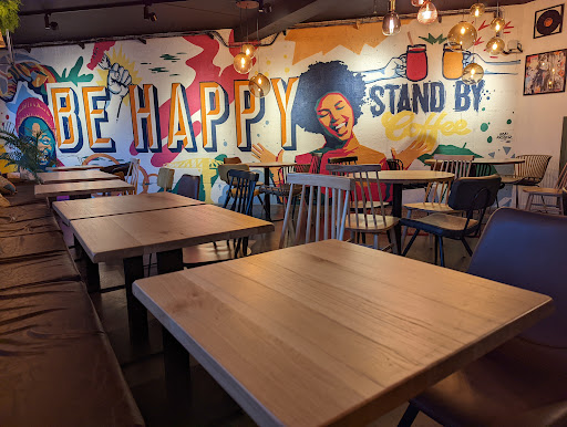 Good for coworking or eating quickly. The setting is nice, the location is easy to access with the timer, by bike or on foot, relatively quiet outside of lunch time. It's quick, not necessarily high quality and sophisticated, the products are good overall. Fast and friendly service. I just missed the ginger smoothie, filled with pieces of ginger that were way too big and impossible to drink.