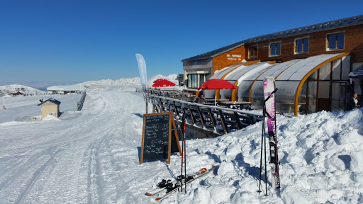 After a good morning of skiing, it is pleasant to sit on the terrace in the sun to eat a hot meal. Of course it's self-catering cuisine (it looks a bit like a canteen) but for a high-altitude restaurant it's very correct. With the good weather and the return of the snow there were a lot of people and a lot of waiting or difficulty finding a place and it felt a bit factory but hey... We don't blame the establishment for that. Otherwise the desserts are good and the restaurant is quite large. Those who are slowing down for the high prices I find this justified for my part. We are in a high altitude restaurant, not in town with the camtar who comes to deliver the goods right in front to a delivery place.