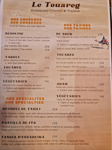 The Touareg restaurant is a real gem! The warm and authentic atmosphere transports us to North Africa, and the service is impeccable. The dishes, particularly the candied fruit tagine, are a pure delight: perfectly balanced flavors and careful presentation. A memorable culinary experience, which I recommend without hesitation!