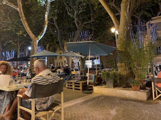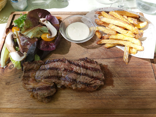 Inside on a windy, rainy May 1st. Quiet in Cotignac but lunch service open at Les 3 Marches which is normally an ok choice outside in the summertime. So a 2-course at €22 with mixed grill, either fried potatoes or as homemade fries and salad. Main course large and ok tasting but ordinary presentation. For dessert cafe gourmand which was very good and I think possibly homemade. Quick and informal service.