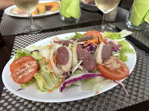 We had a salad with duck breast foie gras, a salad with duck sleeve, a cassoulet and a dish of the day (vegetable tart) and we all enjoyed our dishes. Fast service and smiling staff.