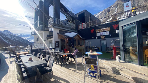 Terrace atmosphere at the edge of the snow or on the snow. Self service or table service, a little complicated. The prices are the worst part.
