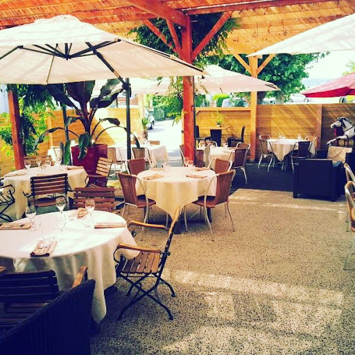 The shaded terrace is very pleasant and I really like the artists' paintings which decorate the 2 rooms where the space preserves the intimacy of the table.