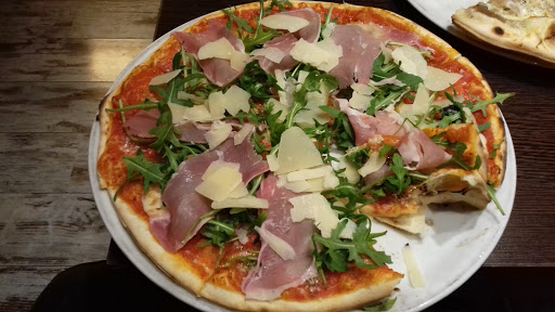 Very good pizza. Thin and crispy dough. And impeccable service