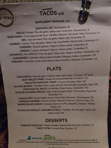The truth is, they are the first tacos in Paris that I like, including the guacamole. They are the ones that most closely resemble a true Mexican taco flavor. I was very surprised that they had an option for tongue tacos because it is not very common. PLUS the sauce IS spicy, good there.(: