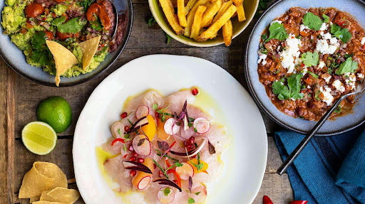 Tasty original tacos, well spiced, good produce and freshly prepared. Sea bream ceviche also very good and spicy (small peeled tomatoes, just like the citrus slices). Only 1 dessert on the menu (chocolate based) but it is delicious, very indulgent. Huge choice of cocktails, but also good beer.