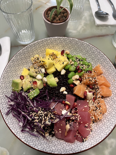 Very good quality poke. Wide choice of proteins and toppings, quality ingredients. Quite hearty. Nice and attractive place. Good welcome. Small downside, price quite high €14.90 for a single poke, fortunately restaurant tickets are accepted. I highly recommend