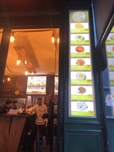 A place I frequent for a long time. Vegetarian or meat soups for 6 euros. Served with bread. They also have dessert: baklava and rice with milk.