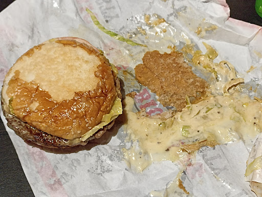 So I think that for eating something this table can help but it is far from the entrance to the shopping center. Price increasing. Average in terms of cleanliness of tables and seats where splashes of mayonnaise-type grease must be avoided. The taste of the burgers is usual. The service is provided slowly and friendly, nothing more.