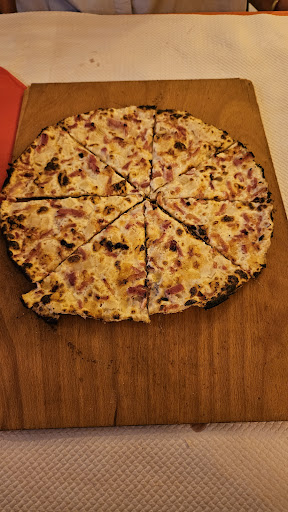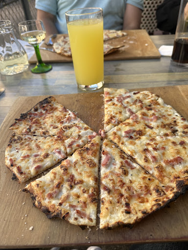 Unfortunately, the tarte flambée base isn't homemade; it's industrially produced. That's a shame. It was still delicious, though. But in Alsace, you can expect more.