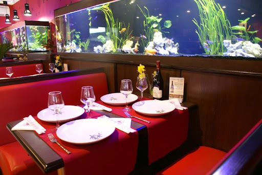 At the back of the restaurant there are bay windows on the ceiling which give a beautiful light with a small fish pond.