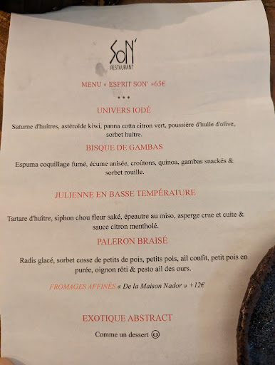 Delicious mackerel as a starter, magnificent julienne at low temperature as a main course with dry ink risoni, and a sublime trompe l'oeil dessert. 25 euros. And the Sancerre to accompany it was perfect.