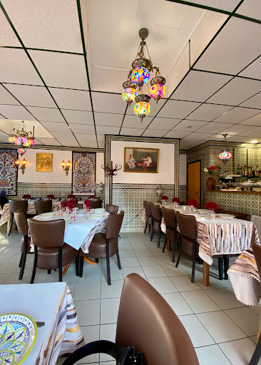 couscous très bon mais tarifs très élévés , sans faire d'excès, 45 eur par personne , une bouteille de vin gris ( rosé ) 27 eur , service rapide mais pas très chaleureux le tarif des couscous et tajines sont similaires 26 à 29 eur pour 1 personne , et la taille des contenants est pareille pour 4 personnes que pour 8 personnes , bien sur on peut redemander des légumes