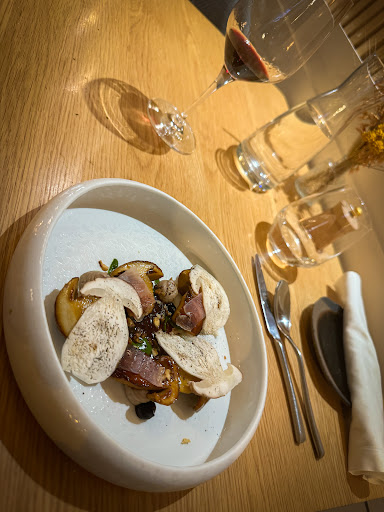 3 hours of papillotherapy! The setting is sober and warm, in contact with a Scandinavian light oak table, the room is made to muffle the noise and concentrate on the food. Four appetizers and seven dishes will follow one another and reveal to us in turn the inventiveness of Victor Ostronzec. This evening, the sea takes pride of place. The cooking of the fish is perfect, the presentation of each dish meticulous. The mixture of flavors announced delighted us, sometimes lively, sometimes slight, just spicy on a final bite. The service is efficient and discreet, the room-kitchen complicity is well established. The wines offered cover a wide range of grape varieties and regions as well as prices. The suggestions and advice in this last area were very useful to us, not knowing the menu in advance. I will often think back to the work accomplished on this pigeon bred by Jean-Christophe Duleau de Langon...