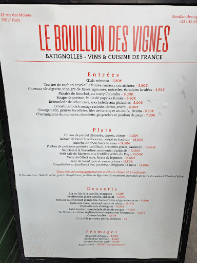 Le Bouillon des Vignes offers quality cuisine with very tasty dishes, but unfortunately several aspects of the experience leave something to be desired. Although the food is delicious, the portions are rather modest, giving more of a bistro feel than a truly generous broth. For example, we only received one serving of fries and one serving of salad for two or three people, which is disappointing. Plus, the vegetable options are all extra, which can quickly add up to the bill.
