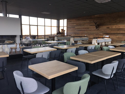 A well-placed restaurant on the slopes with panoramic views even inside (room with quality furniture and decoration). Large, sunny outdoor terrace. Certainly a self-service restaurant but the grills are cooked in real time and the plates are copious for a reasonable price compared to our Savoyard prices! (3 lamb chops/gratin dauphinois 19.50 eur). Note: paid water.